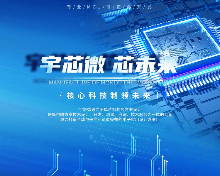 溫州宇芯微是國內(nèi)一家以32位MCU/8位單片機(jī)方案開發(fā)設(shè)計及生產(chǎn)制造為一體的行內(nèi)知名企業(yè)。擁有多達(dá) 100 種各領(lǐng)域的單片機(jī)/主控芯片/MCU(以下統(tǒng)稱為“單片機(jī)”)的方案開發(fā), 可為您的產(chǎn)品開發(fā)降低成本最高可達(dá) 30%,在產(chǎn)品研發(fā)領(lǐng)域中,我們所把控的資源將是您選擇的理由!公司的單片機(jī)通過了SGS 認(rèn)證,在產(chǎn)品的安全性有保障,我們可以承諾產(chǎn)品的優(yōu)良率高于99.7%,如超過經(jīng)過技術(shù)檢測屬實,我們會補(bǔ)足訂單的芯片數(shù)量,并承擔(dān)產(chǎn)品運輸?shù)乃匈M用。
